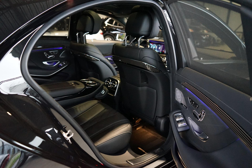 Schitterende Mercedes-Benz S450 van bouwjaar 2018 met slechts 46.361 kilometer gereden. Zeer rijk en smaakvol uitgerust in Obsidiaanzwart met Leder Exclusief pakket. Het nappa-lederen interieur onderscheid zich met enkele fraaie opties waaronder Diamant-sticksel geventileerde en verwarmde stoelen, luxueus met leder en sierdeel bekleed stuurwiel en sierlijsten in pianolak met 'flowing lines'.