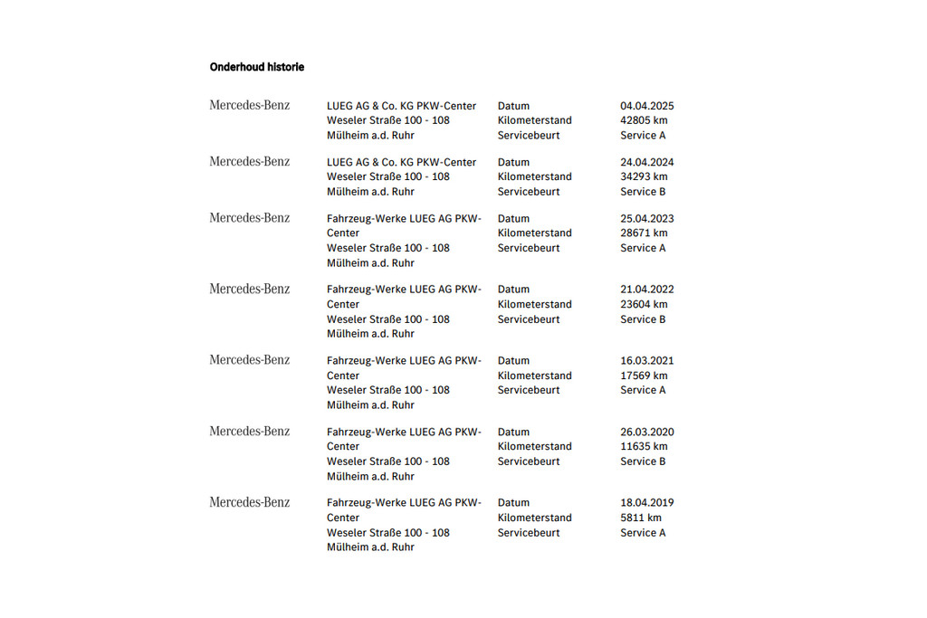 - Onderhouden door één en dezelfde dealer (LUEG Mulheim)