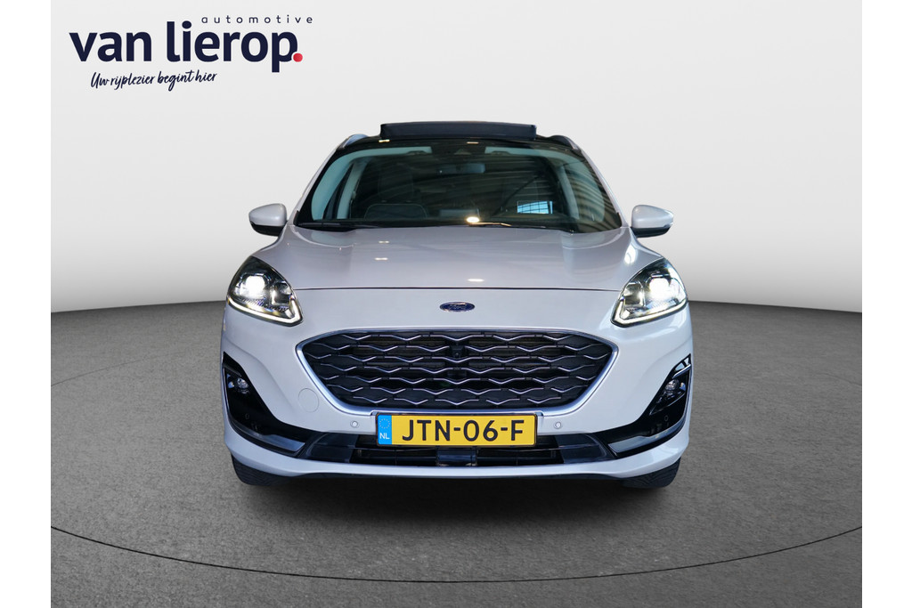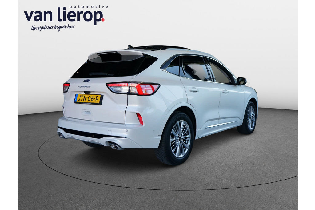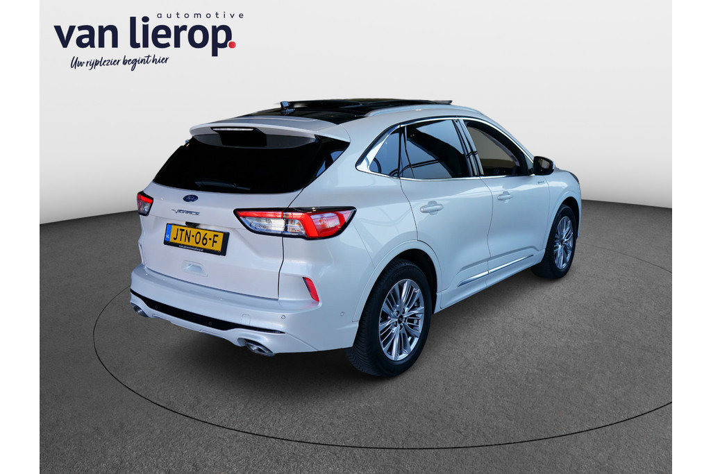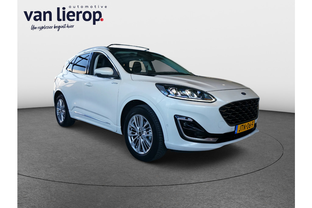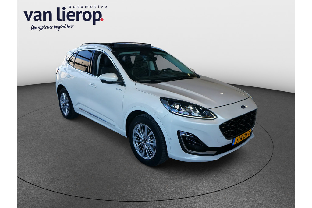 Hierbij bieden wij u deze zeer nette Ford Kuga Vignale van bouwjaar 2021 met slechts 60.817 kilometer gereden. Deze Ford is zeer rijk uitgerust met vele extra's waaronder: elektrisch glazen panorama-dak, lederen bekleding, elektrisch verstelbare bestuurdersstoel, stoelverwarming, stuurverwarming, voorruitverwarming, B&O geluidssysteem, navigatie, achteruitrijcamera, parkeersensoren voor en achter, elektrische achterklep en lichtmetalen wielen.